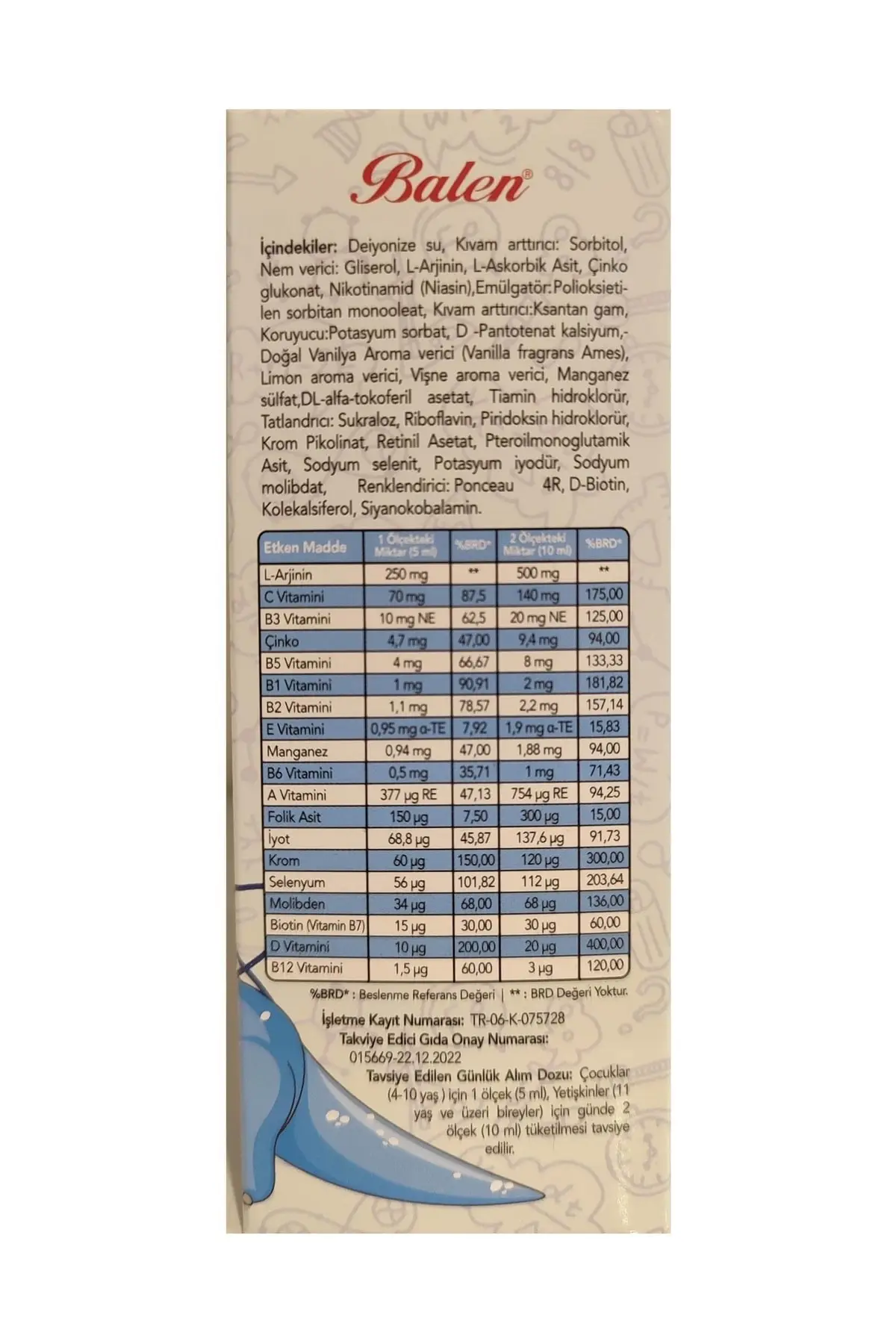 | Etiketler | Balen Argiboost L-arjinin, Multivitamin, Mineral Içeren Sıvı Takviye Edici Gıda 150 Ml |