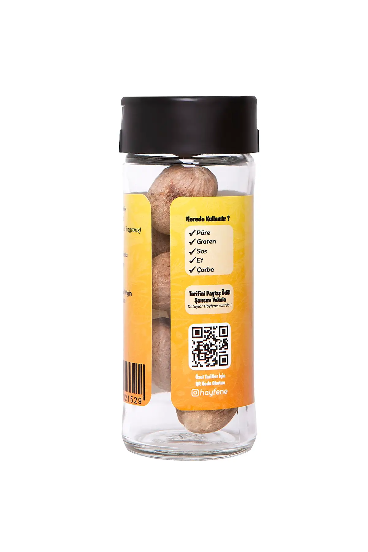 Ürün adı hayfene muskat 40 gr, diğer isimleri; küçük hindistan cevizi, cevz-I bevva. Menşei; Endonezya. İngilizce adı: nutmeg. Botanik adı; myrictica fragans houtt. Ürün hakkında muskat ağacı,tarihte baharat adaları olarak bilinen, günümüzde Endonezya’nın Molucca bölgesine dahil küçük volkanik adalar kümesi olan banda adaları’nda yetişen yerel bir bitki türüdür. Muskat, küçük hindistan cevizi olarak bilinse de gerçek anlamda bir ceviz türü değil, kayısı benzeri bir meyvenin çekirdeğidir. Toz, rende ya da kıyılmış olarak özellikle et yemeklerine, sütlü tatlı, bisküvi ya da kurabiyelere eklenebilir, süt ya da bala karıştırılarak tüketilebilir. Çay ya da ekstre olarak tüketilebilir.